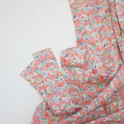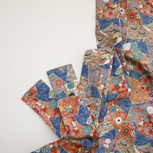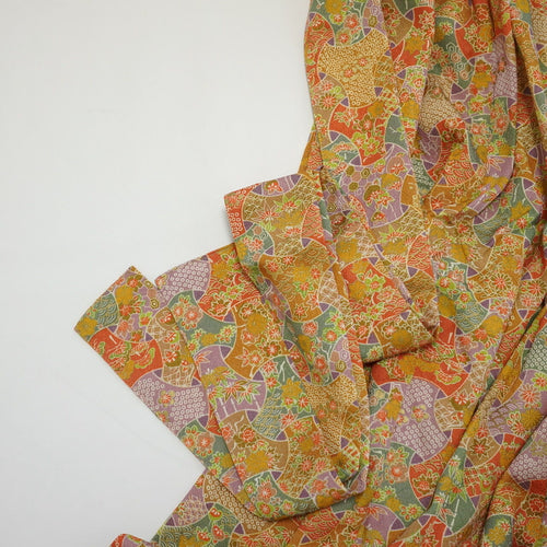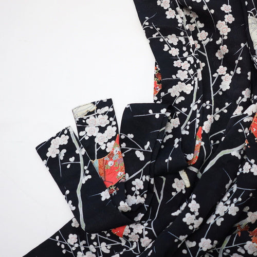 破れ地紙に屋敷楓枝梅模様【ギャザーラップスカート】