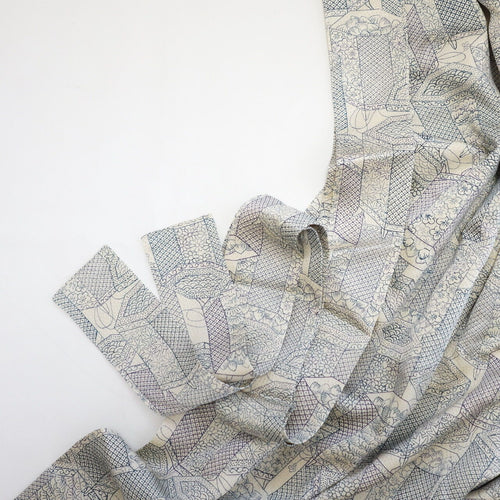 縮緬幾何学取りに絵皿模様【ギャザーラップスカート】