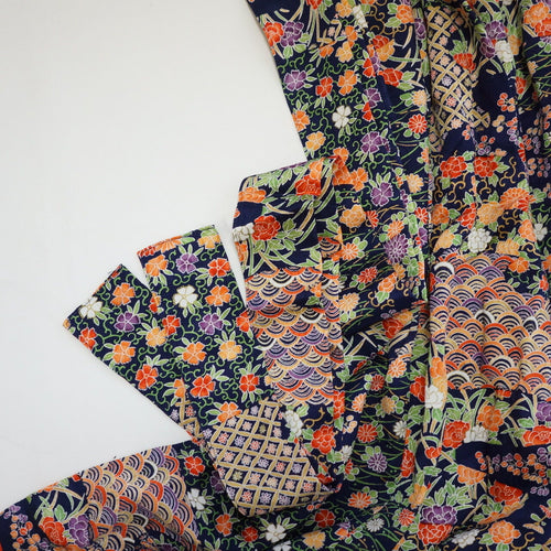 紅葉に牡丹模様七宝地紋【ギャザーラップスカート】