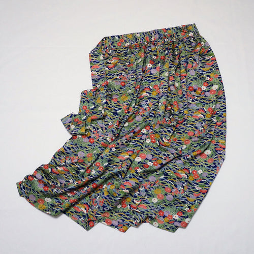 鳥と菊枝梅牡丹模様【ギャザーラップスカート】