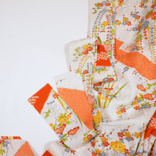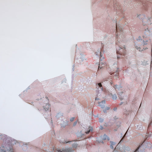 枝梅地紋に花散らし模様【ギャザーラップスカート】