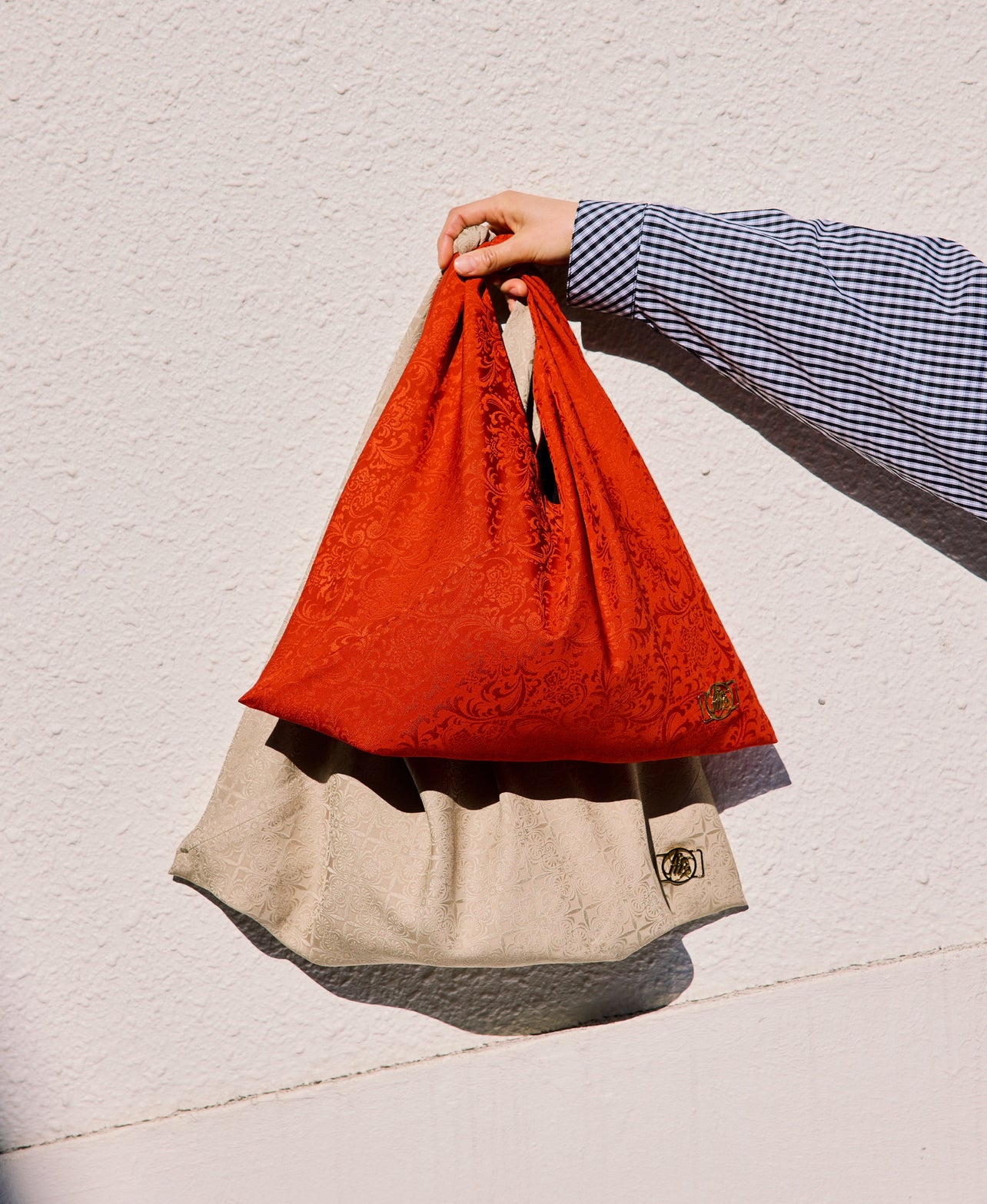 そして、このオリジナル反物を現代のライフスタイルに寄り添う、シンプルで使い勝手の良いアイテムへと仕立てたのが、今回発売となる「ケニあずま袋」となります。