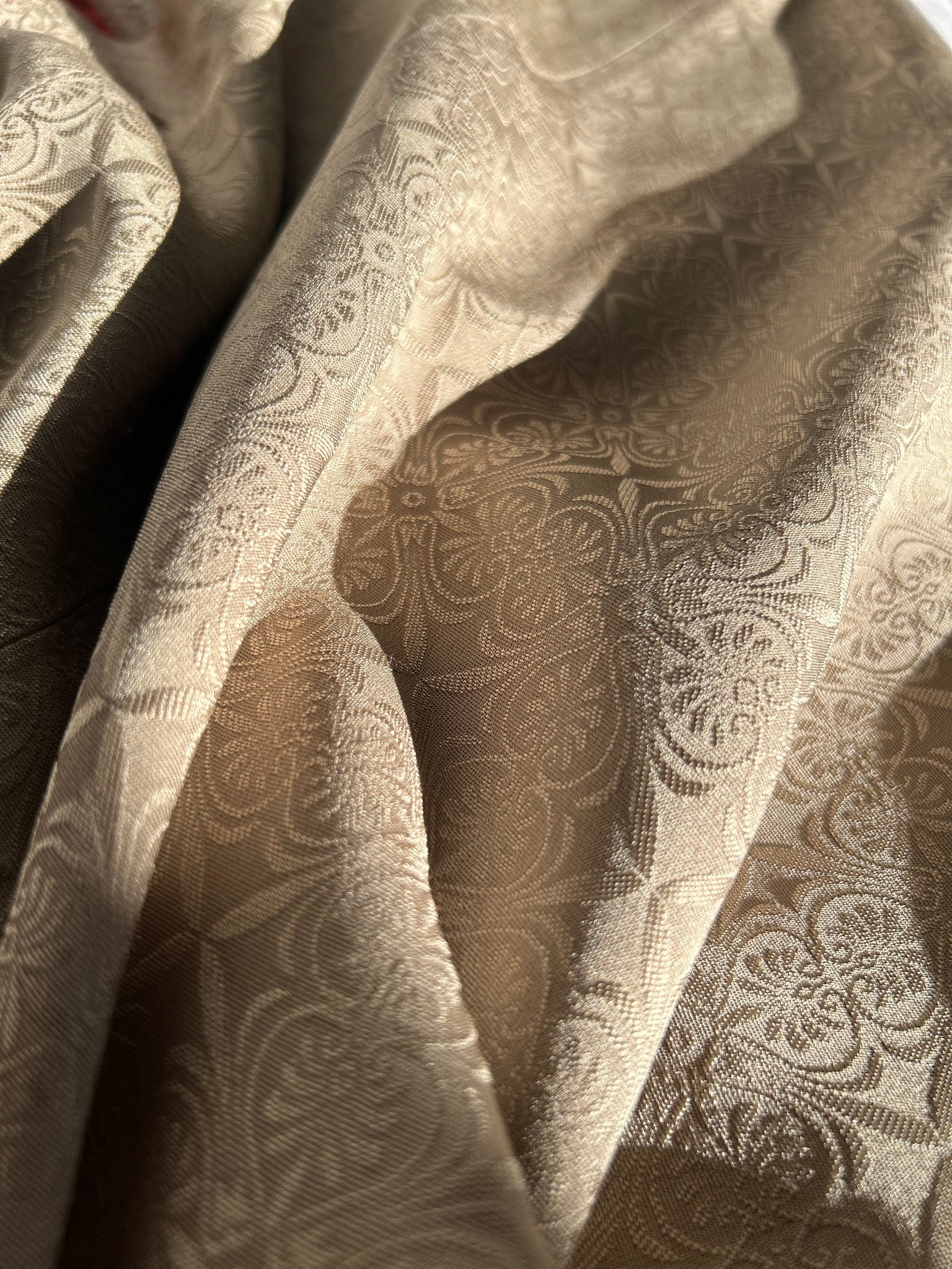 絹織物でございます、濡れた状態では摩擦に弱いため洗濯機でのお洗濯はお控えください、状態を綺麗に長く保つためにも手洗いでの手入れ、もしくはドライクリーニングがおすすめです。