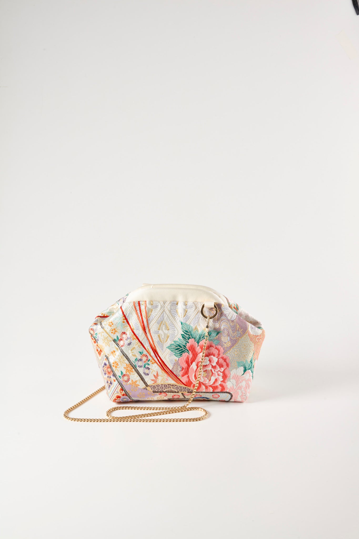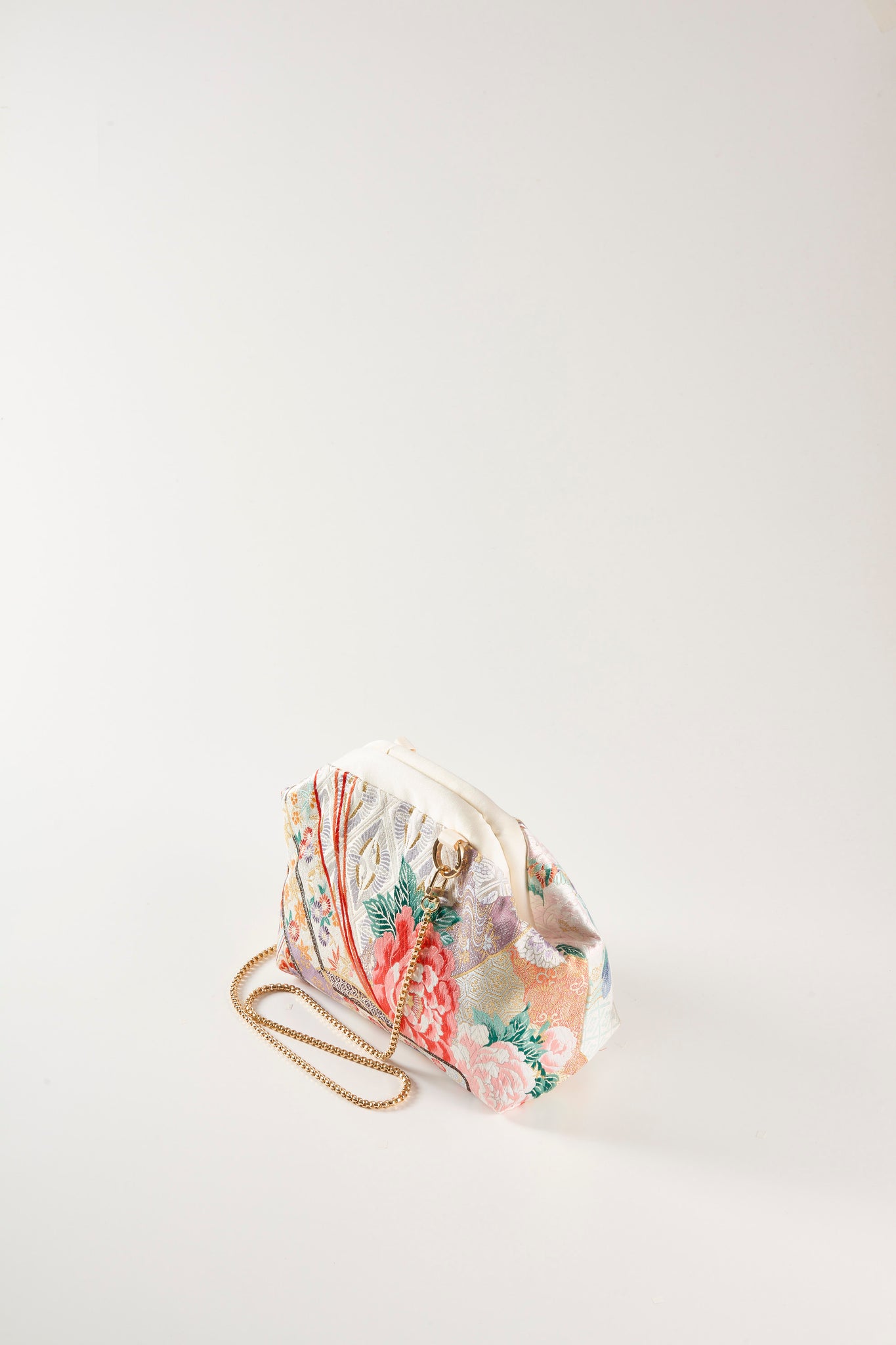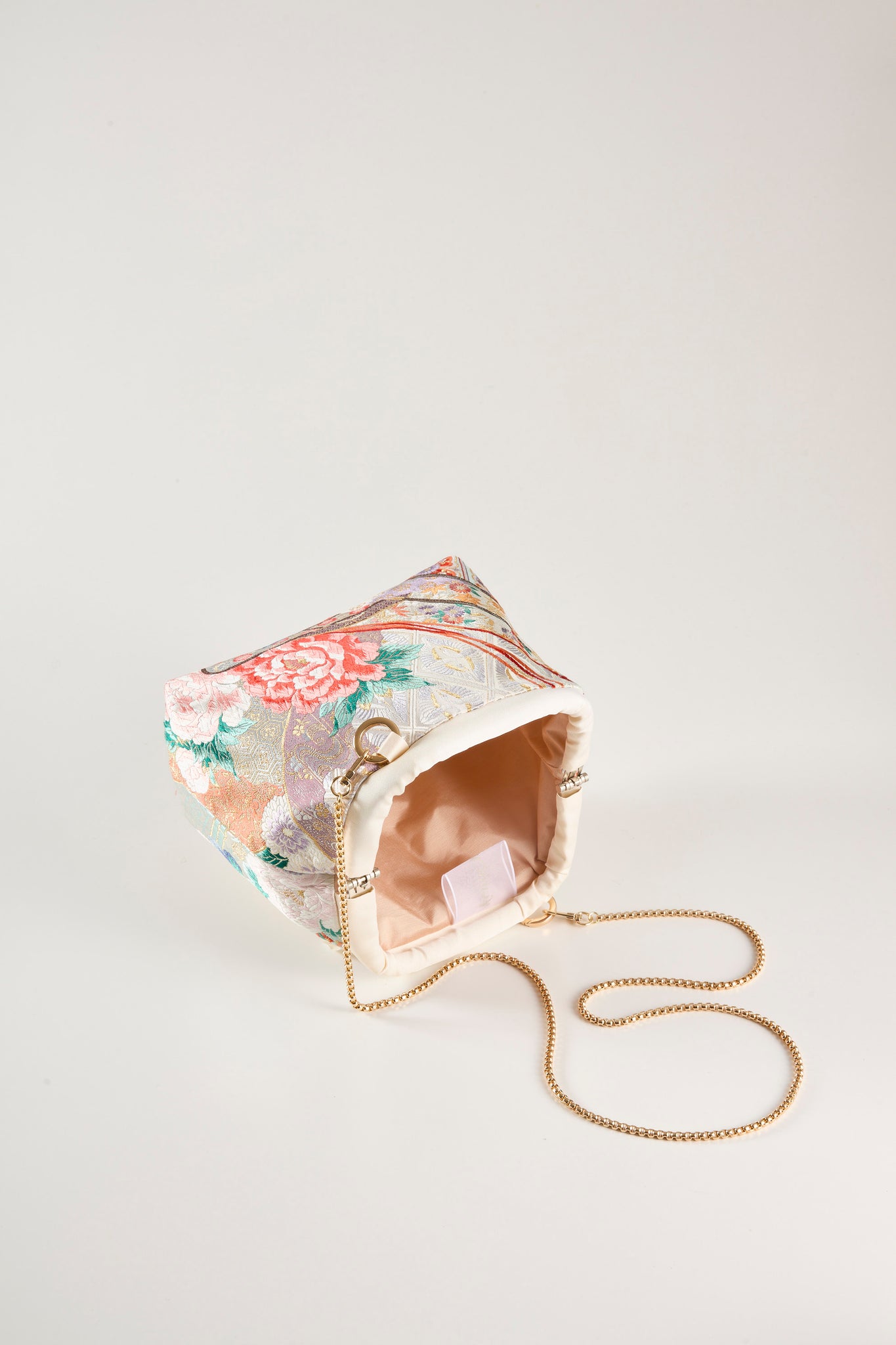keniamariliaセレクト帯のガマぐちバッグ、両面表生地の贅沢なお作りです、裏地には硬めのしっかりしたレーヨン生地採用。