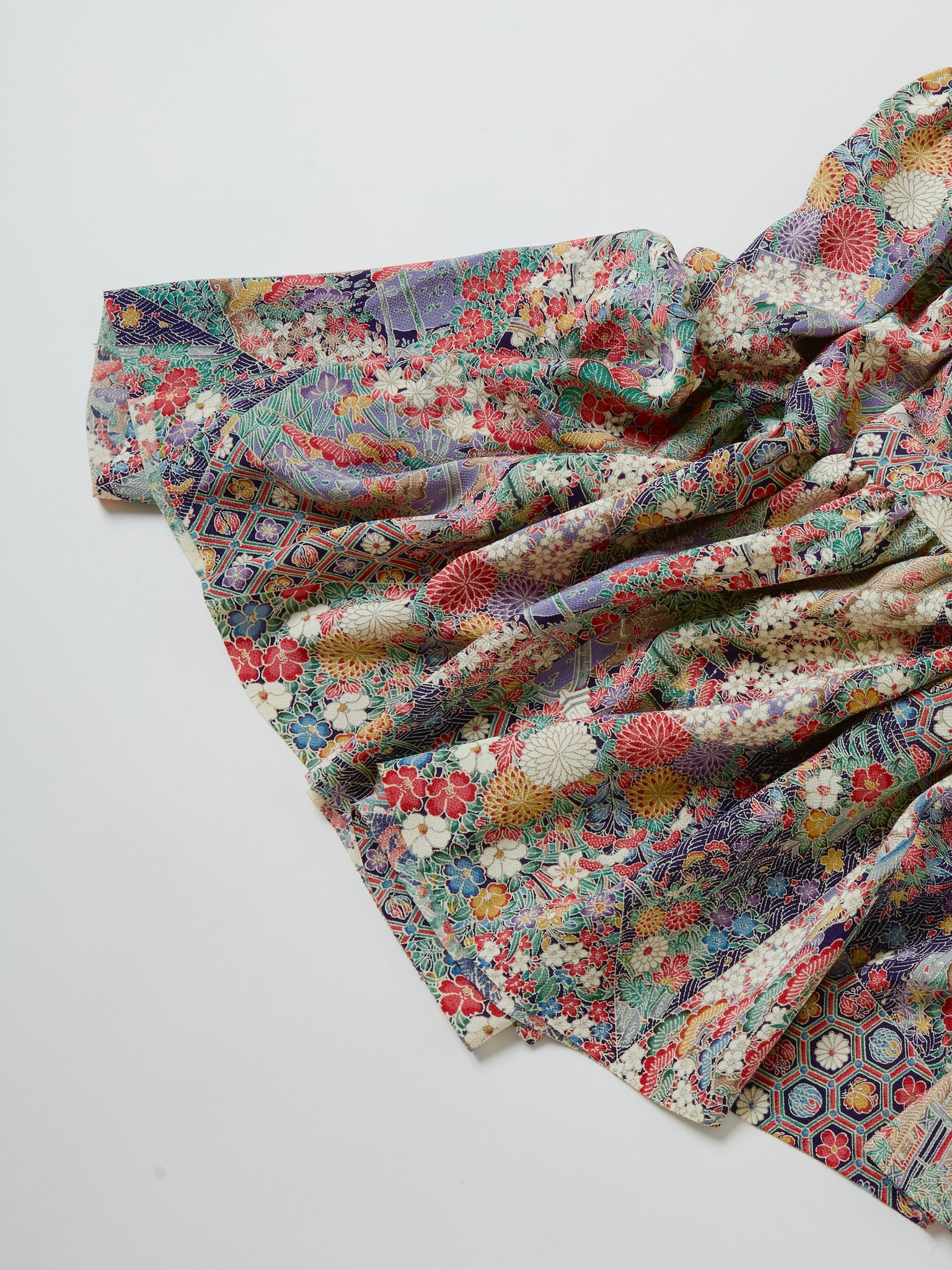 ⁑着物はシミや汚れ破れなどがつきもう着物としては着ることが難しくなったものや、ヴィンテージ、現代着物まで幅広く使用しておりますのでなるべくシミ汚れは逃がして仕立てております。が場合によっては少々アク、シミが付いてるものもございます。古いお着物の時代と時間の経過で現れるものですご理解のほどよろしくお願いもうしあげます。また正絹、化繊共に「防縮加工」をほどこしておりますのでご自宅でのお手入れが可能ですが、同じ色味艶状態を長く保たせるにはドライクリーニングがおすすめです。