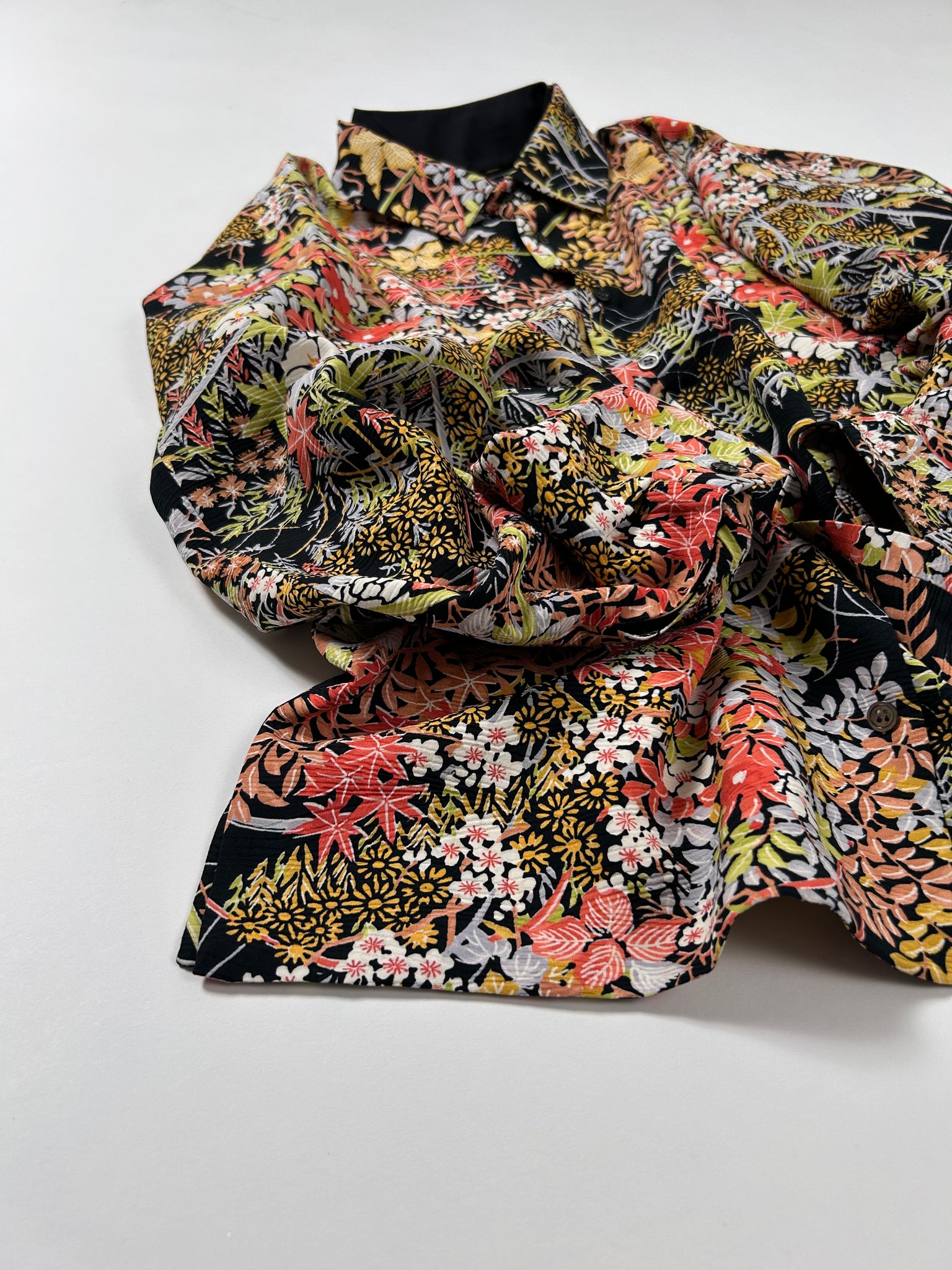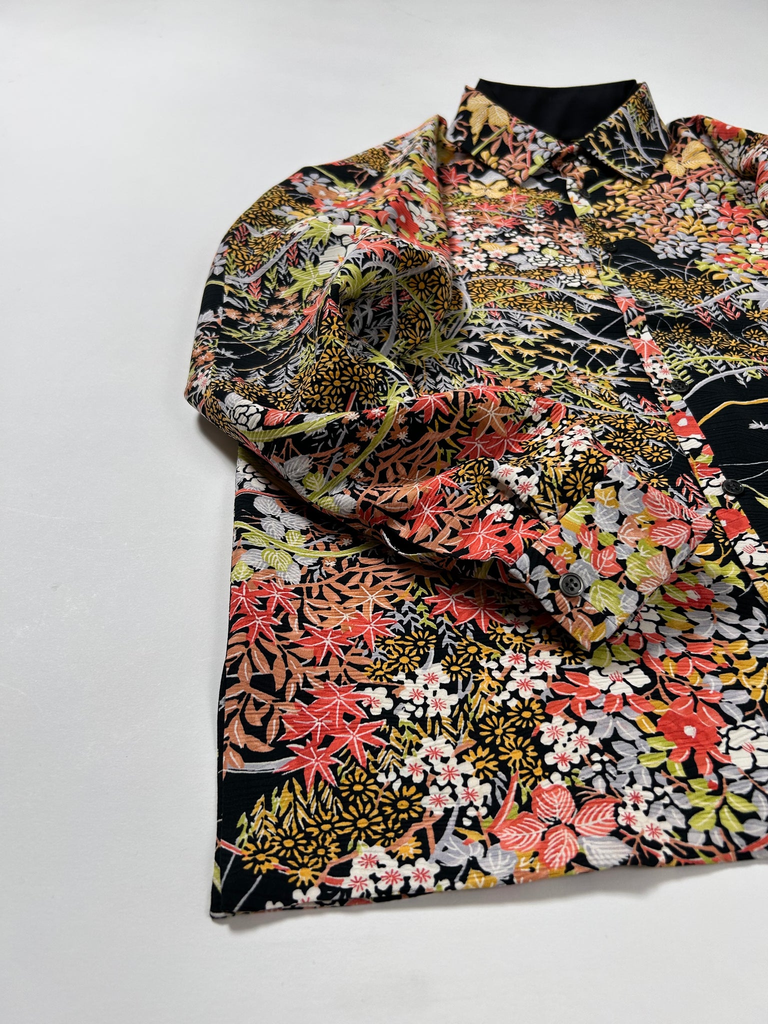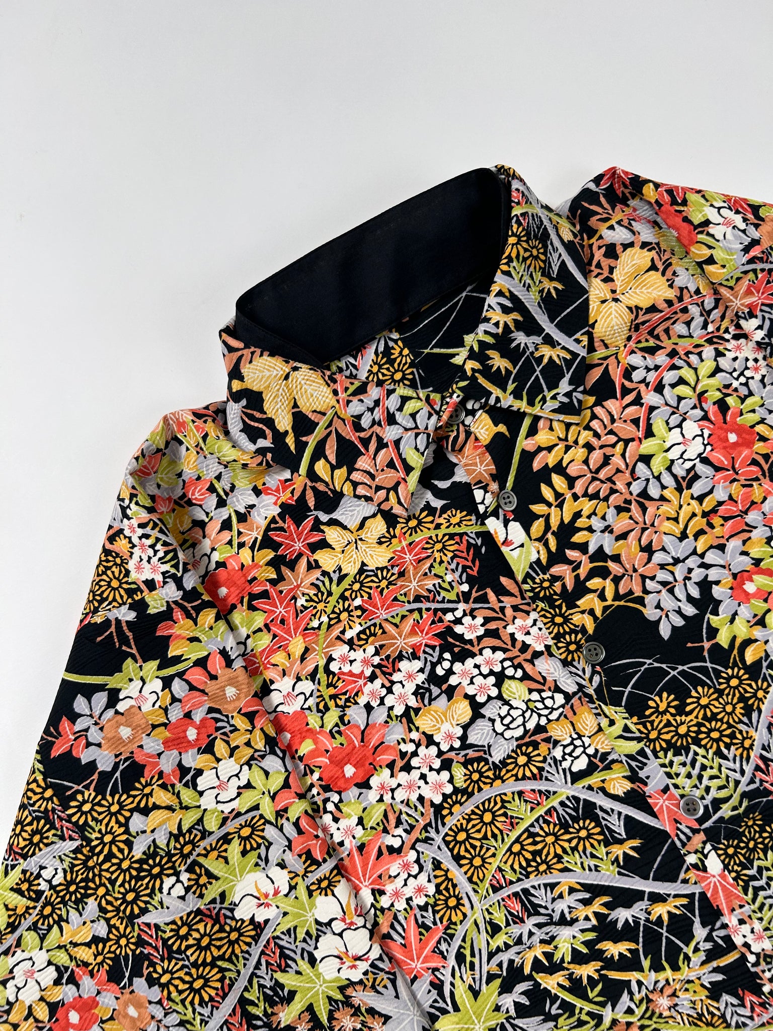 これまでと変わらず、ケニシャツは一反(約12メートル)のお着物生地を余すことなく使用し、総裏仕立ての二枚合わせにてお作りしております。そのため、程よい厚みと重みがあり、お着物一反から一点のみお作りできる、貴重なお品です。