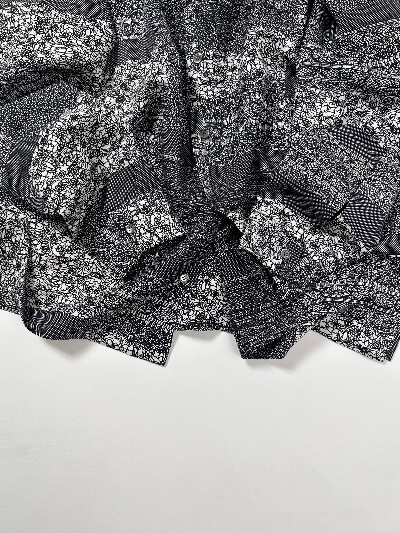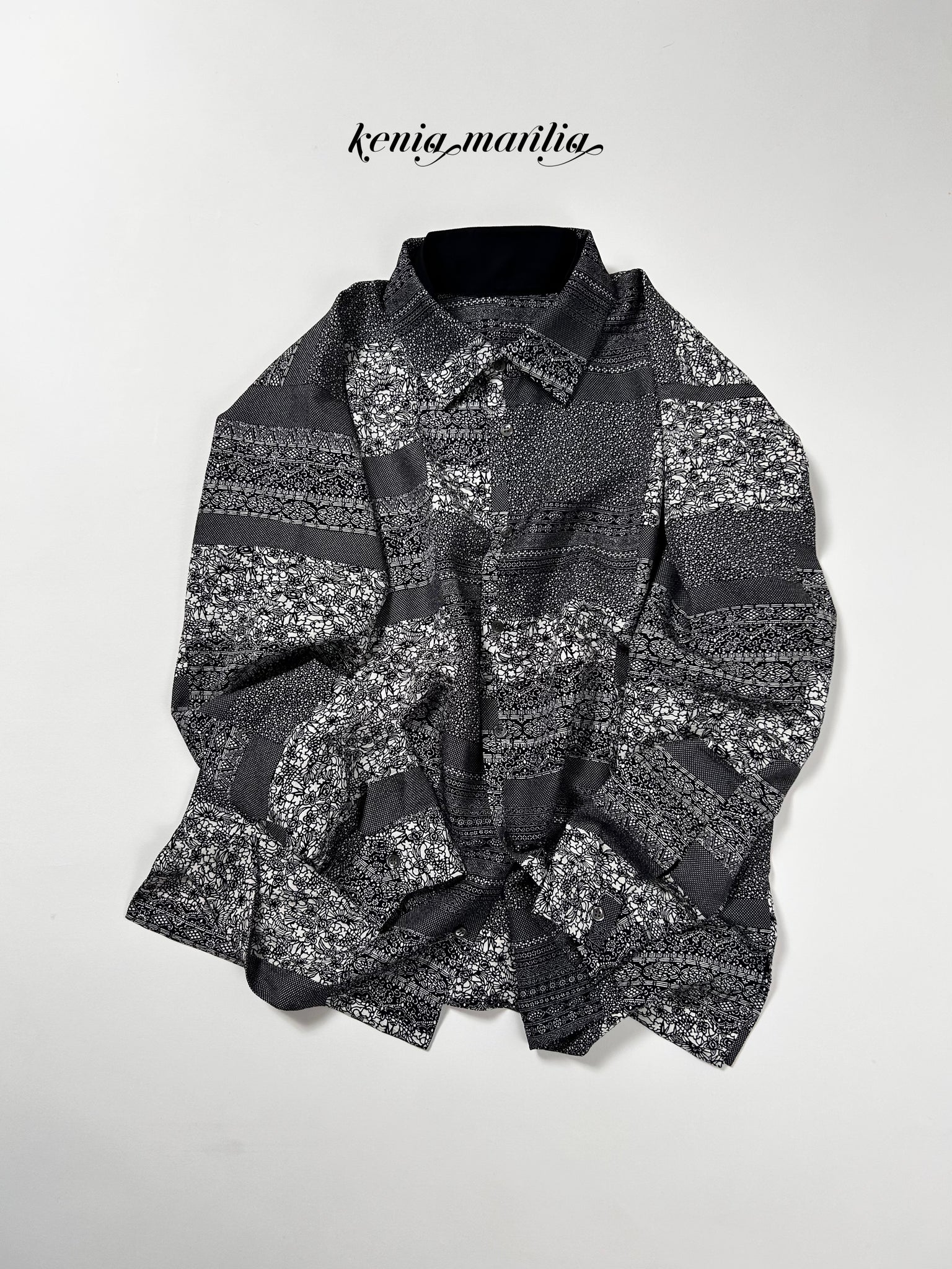 これまでと変わらず、ケニシャツは一反(約12メートル)のお着物生地を余すことなく使用し、総裏仕立ての二枚合わせにてお作りしております。そのため、程よい厚みと重みがあり、お着物一反から一点のみお作りできる、貴重なお品です。