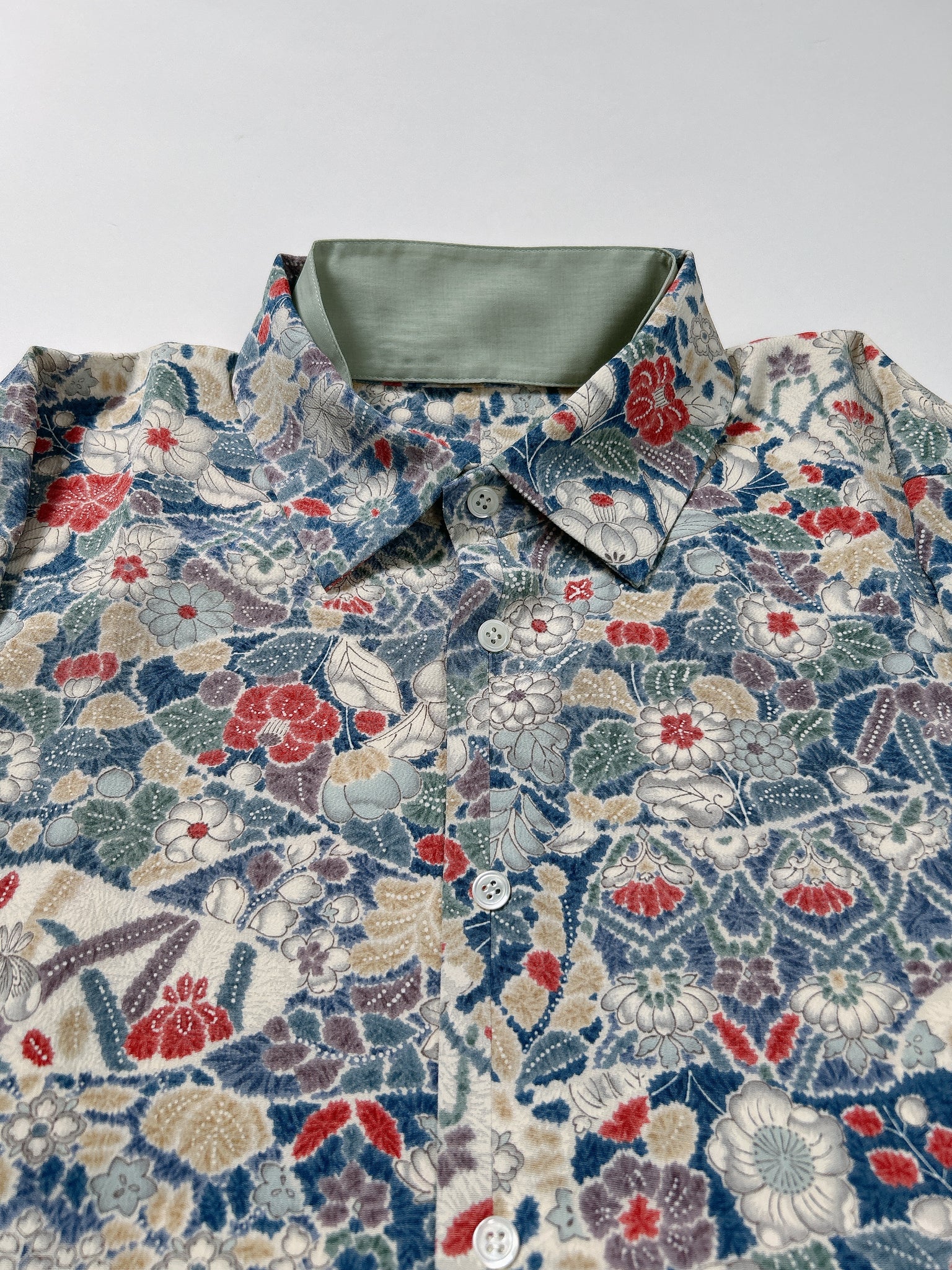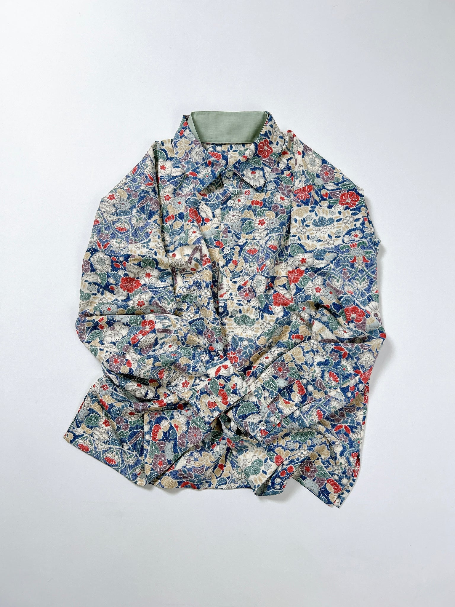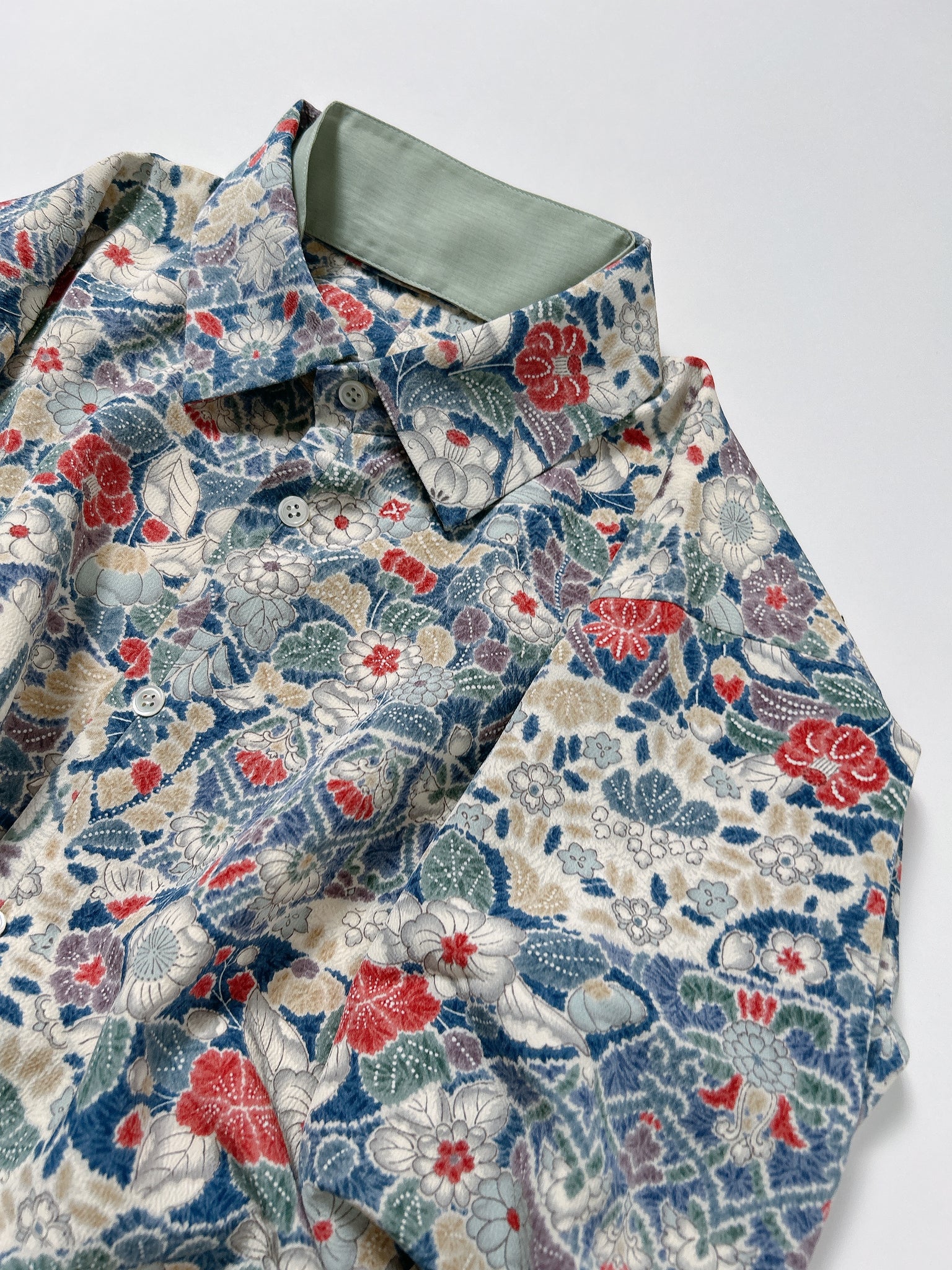 これまでと変わらず、ケニシャツは一反(約12メートル)のお着物生地を余すことなく使用し、総裏仕立ての二枚合わせにてお作りしております。そのため、程よい厚みと重みがあり、お着物一反から一点のみお作りできる、貴重なお品です。