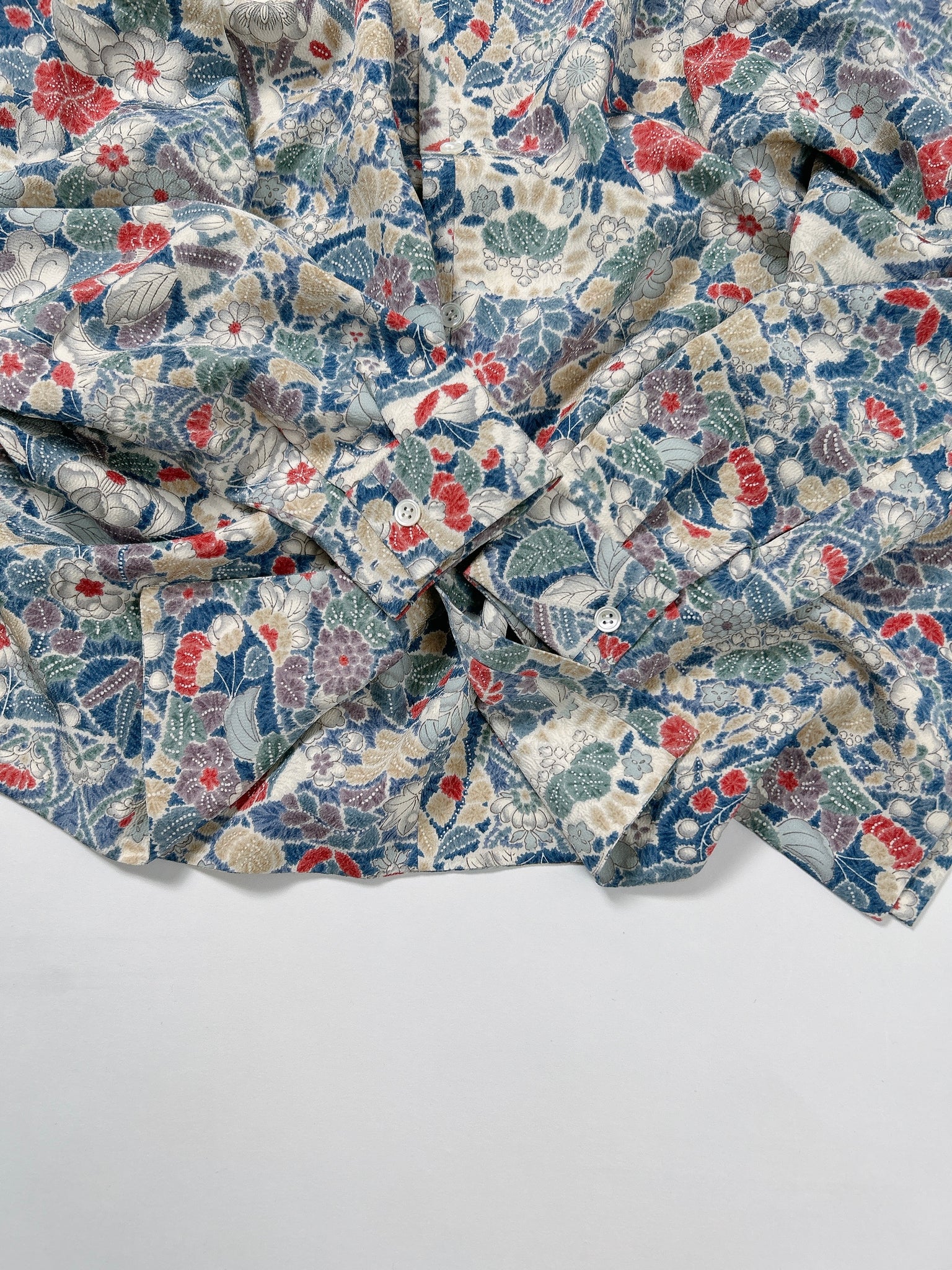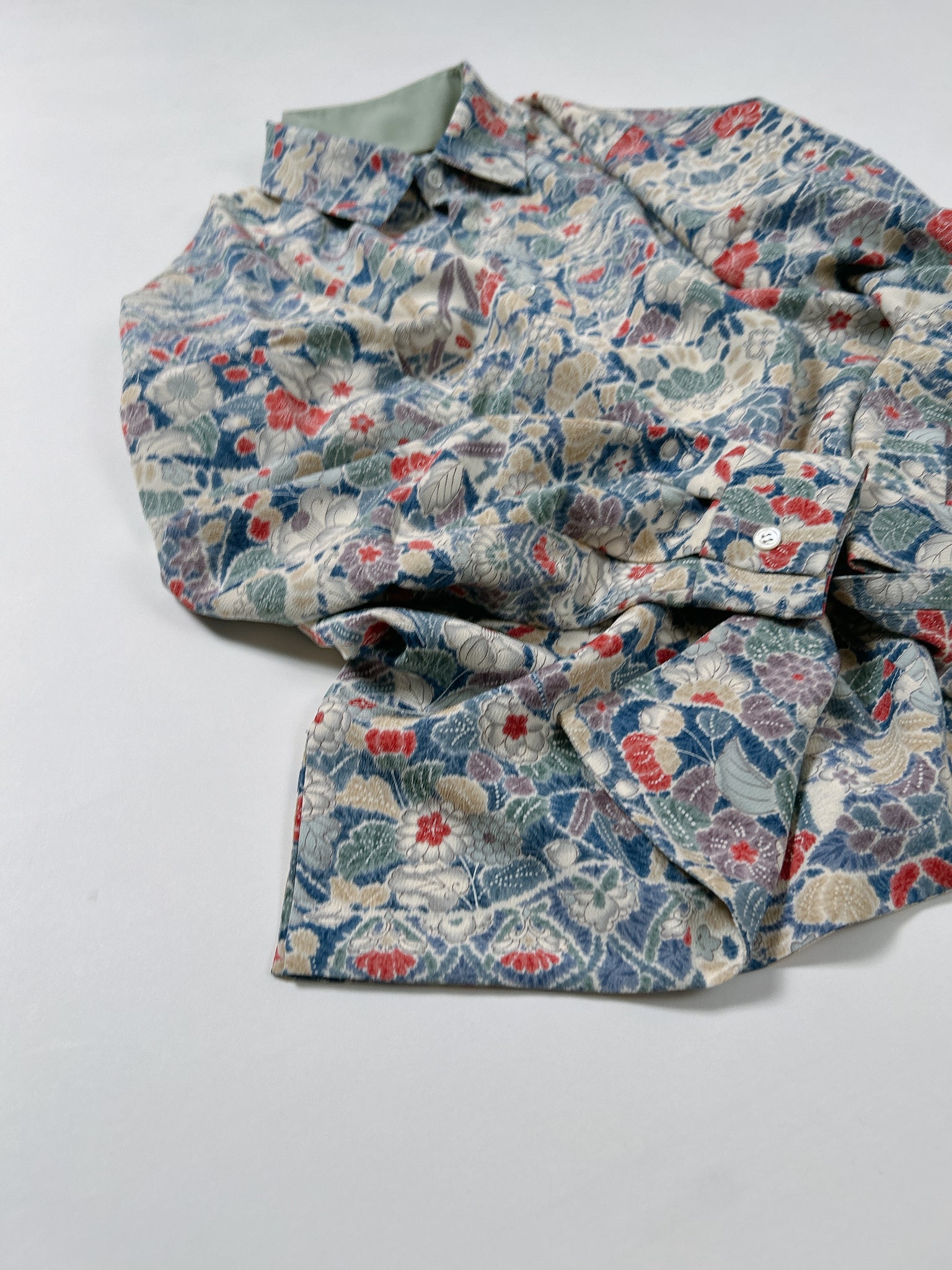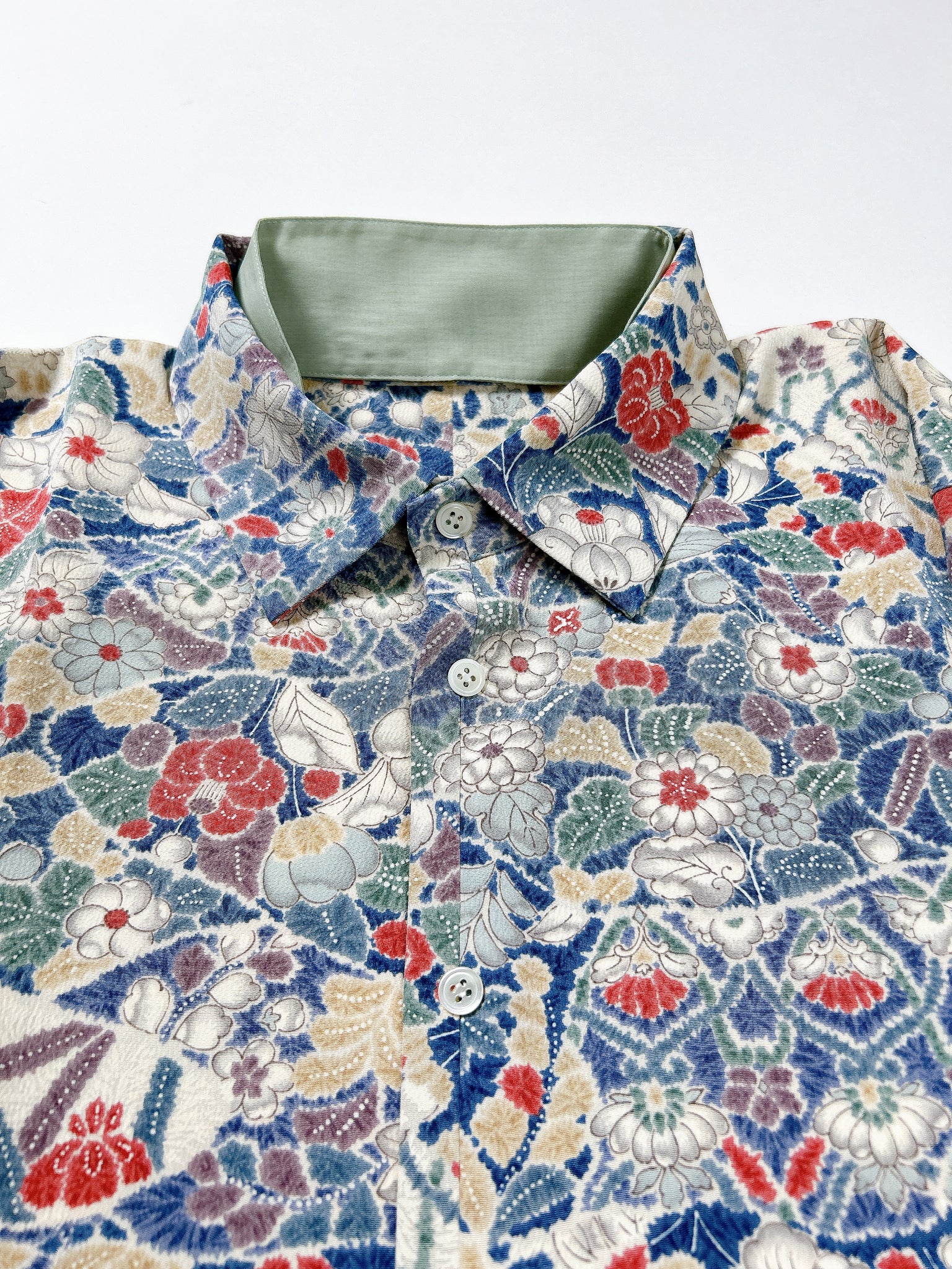 これまでと変わらず、ケニシャツは一反(約12メートル)のお着物生地を余すことなく使用し、総裏仕立ての二枚合わせにてお作りしております。そのため、程よい厚みと重みがあり、お着物一反から一点のみお作りできる、貴重なお品です。
