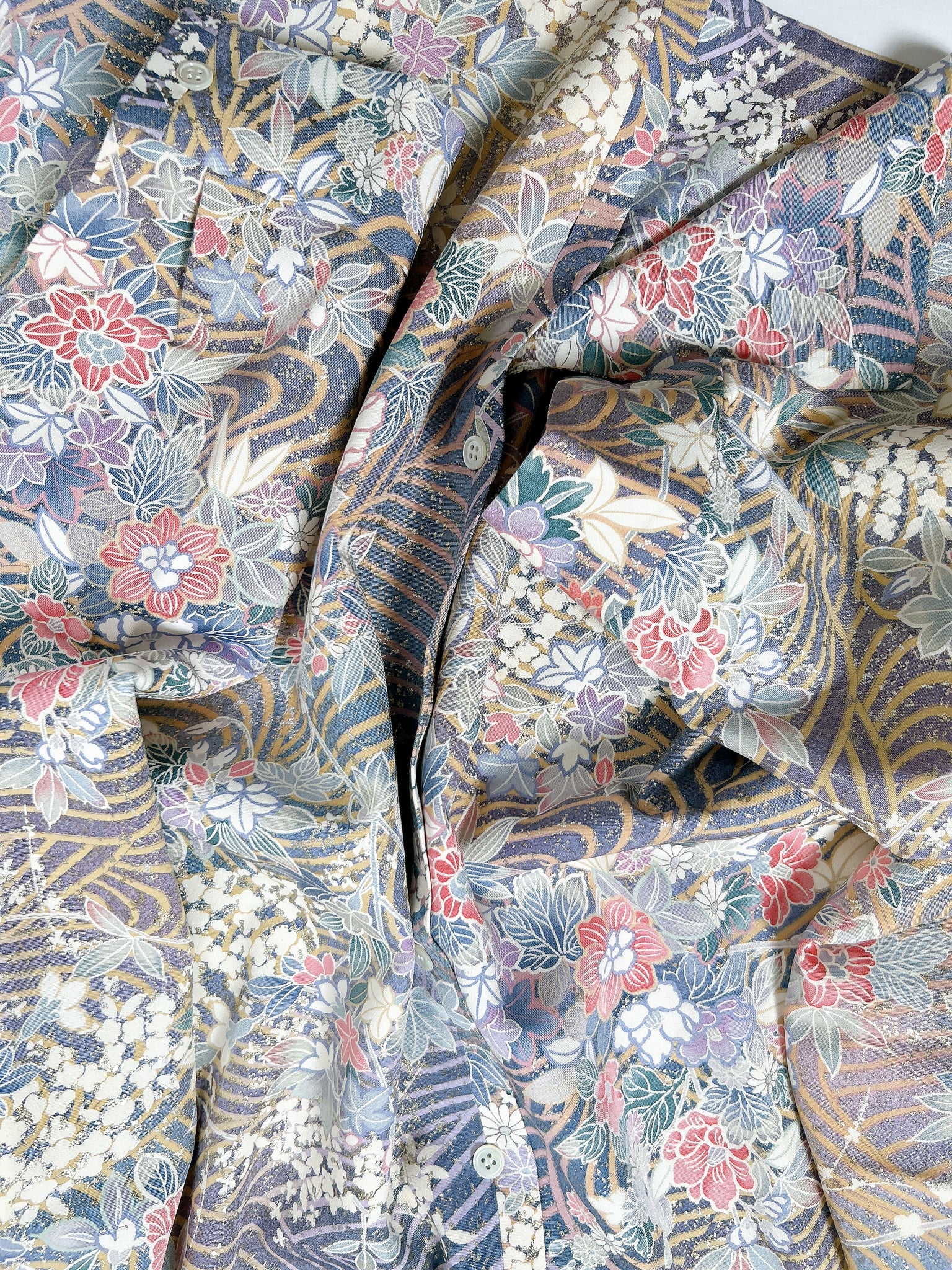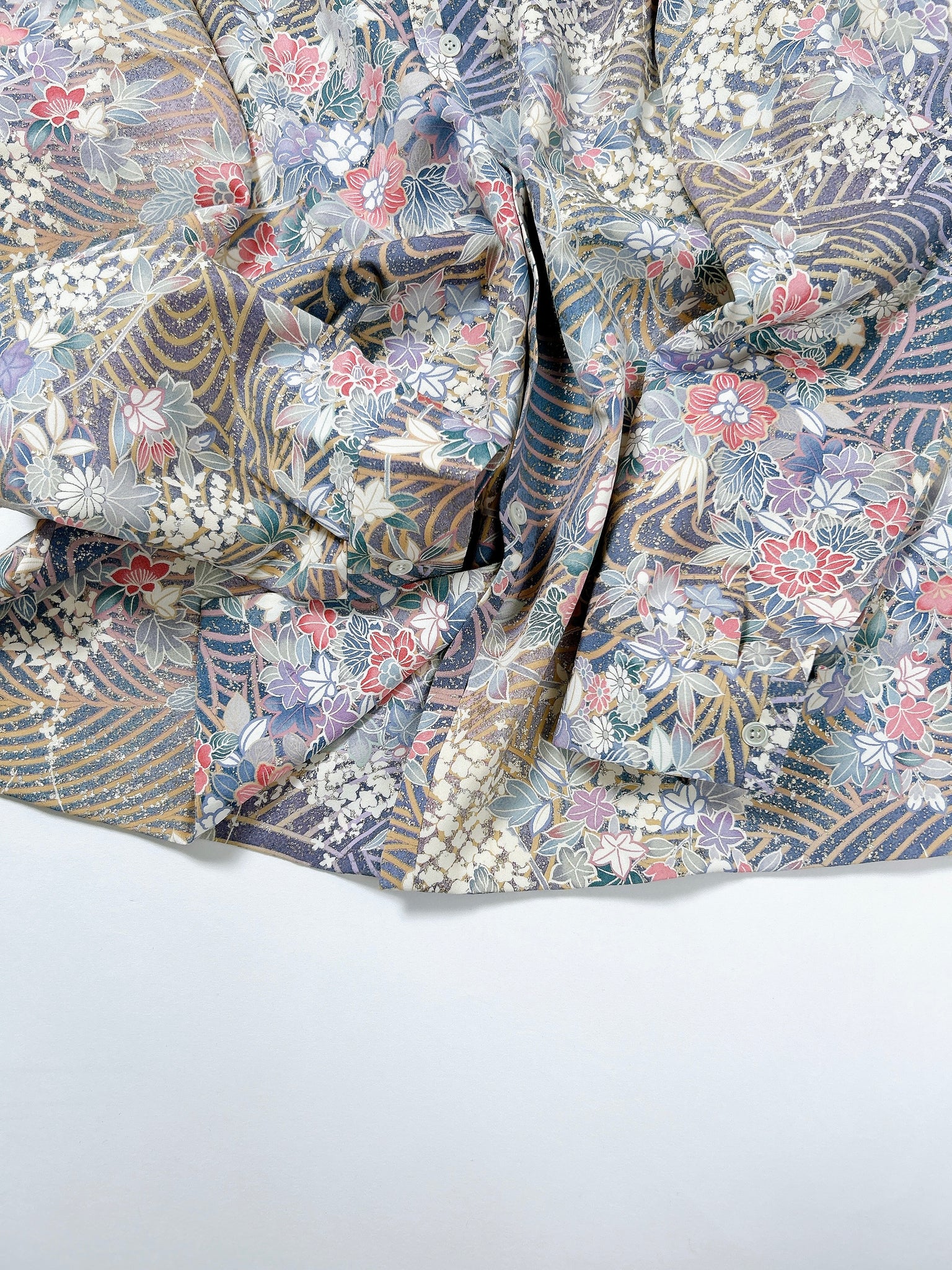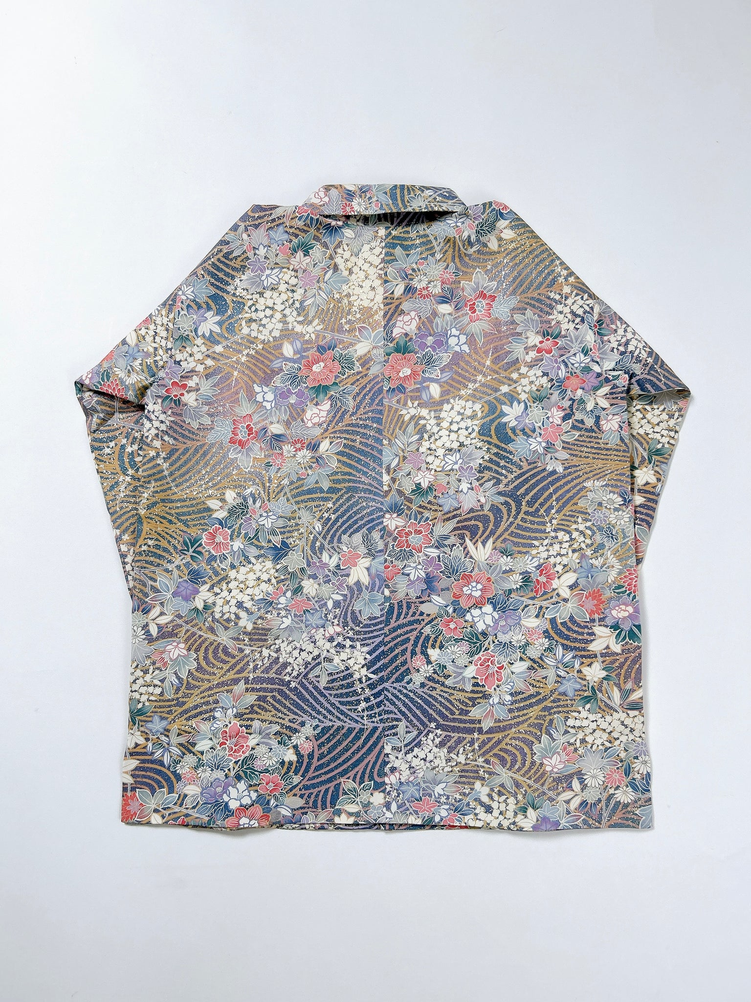 これまでと変わらず、ケニシャツは一反(約12メートル)のお着物生地を余すことなく使用し、総裏仕立ての二枚合わせにてお作りしております。そのため、程よい厚みと重みがあり、お着物一反から一点のみお作りできる、貴重なお品です。